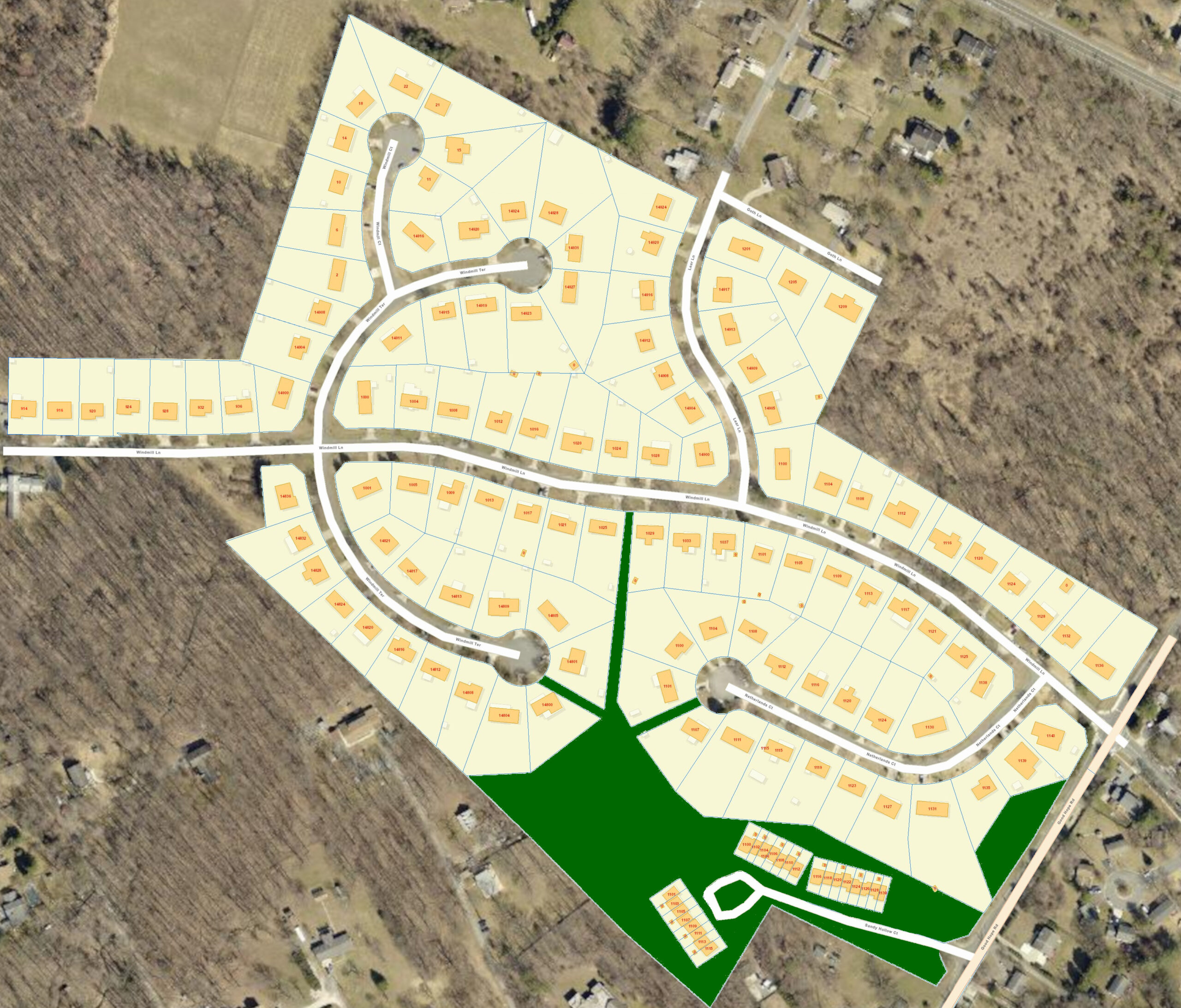 The first three model homes in the community were built on Goth Lane; completed in 1980 and were built by Ryland Homes. Our total community consist of 137 single family and townhouse homes. In the beginning, housing prices were in the $110,000 range.